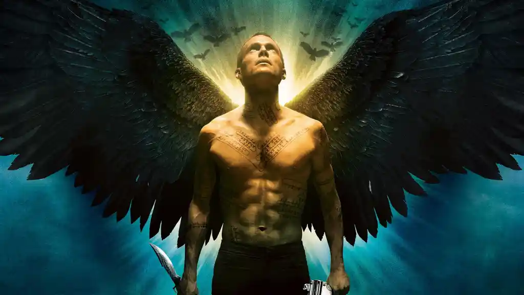 - Paul Bettany con le ali da angelo che spara a zombie-demoni, tipo The Boys ma più biblico